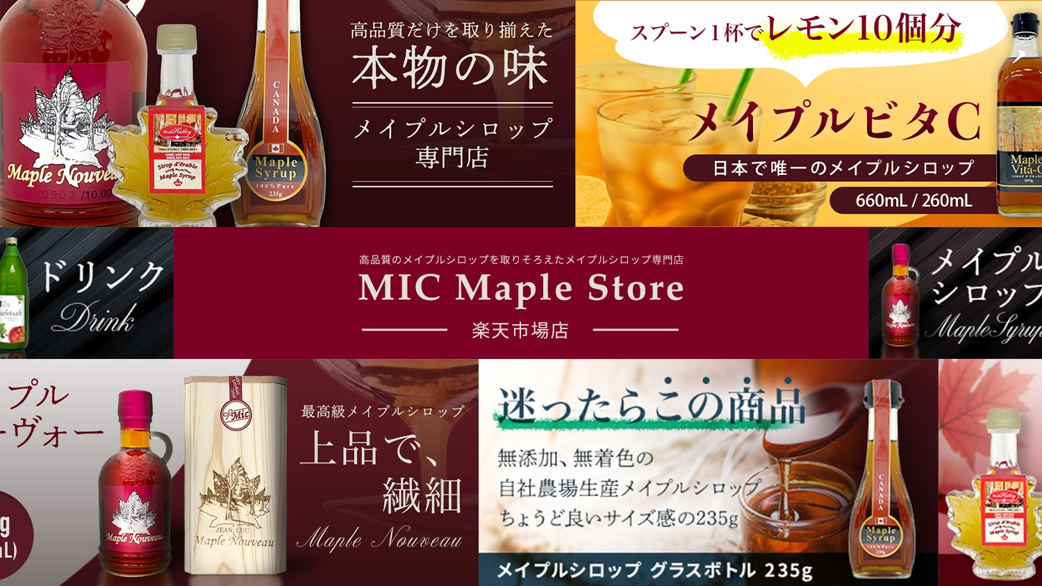 フード系ECサイト「mic Maple Store 楽天市場店」のストアページデザイン・バナーデザイン・簡易撮影を担当。完全新規での立ち上げだったため、商品撮影からスタートしました。「高級感を出したい」「メインカラーは深い赤にしたい」という明確なご希望をもとに、ブランドの世界観を一から構築していくことになりました。